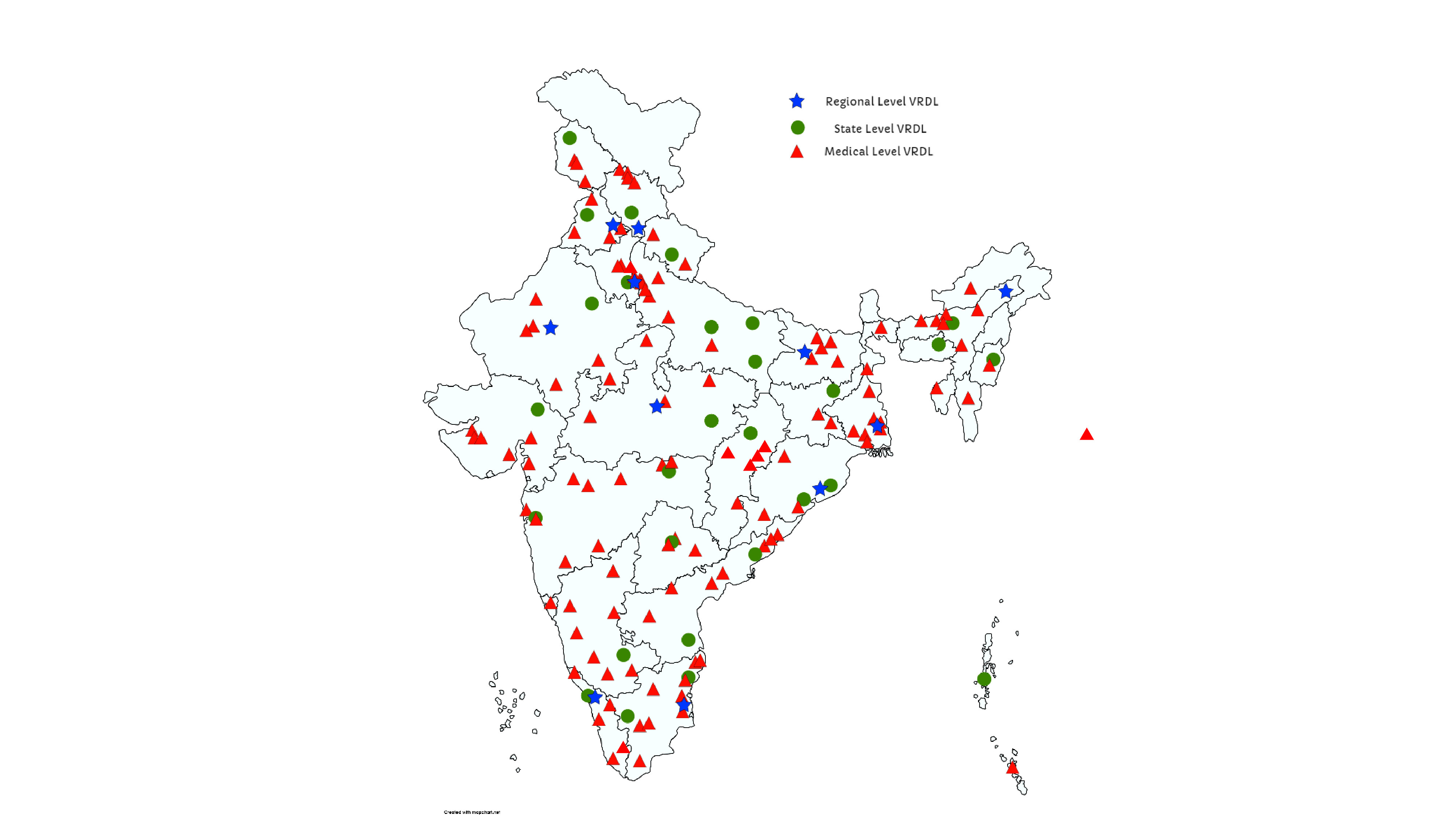 The scheme was envisaged to help coverage of the entire country for timely diagnosis/identification of viruses during outbreaks of epidemics, generation of data about viral diseases for facilitating quick deployment of resources & measures to save the human lives. Initially the target of the scheme during the 12thplan period was to establish three tier network of Virus Research & Diagnostic Laboratories. As on 31st March 2024, a network of 161 VRDLs (11 Regional Level, 27 State Level and 123 Medical College Level) has been established.